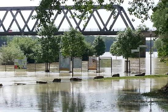 Am ersten Sonntag im Juni waren aufgrund des guten Wetters viele Menschen, ob zu Fuß, mit dem Fahrrad oder dem Auto am Rhein unterwegs. Einige kamen sicherlich wegen der Neueröffnung des Biergartens am Unkenfunk dorthin, die Mehrzahl allerdings um das Hochwasser des Rheines zu sehen.